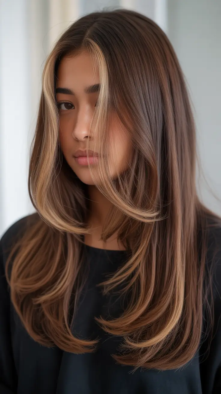 This style feels like the perfect balance between natural and polished. The face-framing highlights add just enough brightness to make the eyes pop, while the layered cut creates movement and softness without trying too hard.
