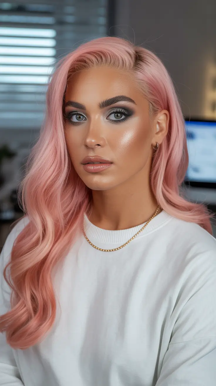 Rosy pink waves always feel like the sweetest twist on spring color, especially when paired with tan skin. The softness of the pink creates a gentle halo effect, and the silky finish keeps it looking elevated rather than overly playful. I’ve always loved how tones like this brighten the complexion while still feeling wearable for everyday moments.