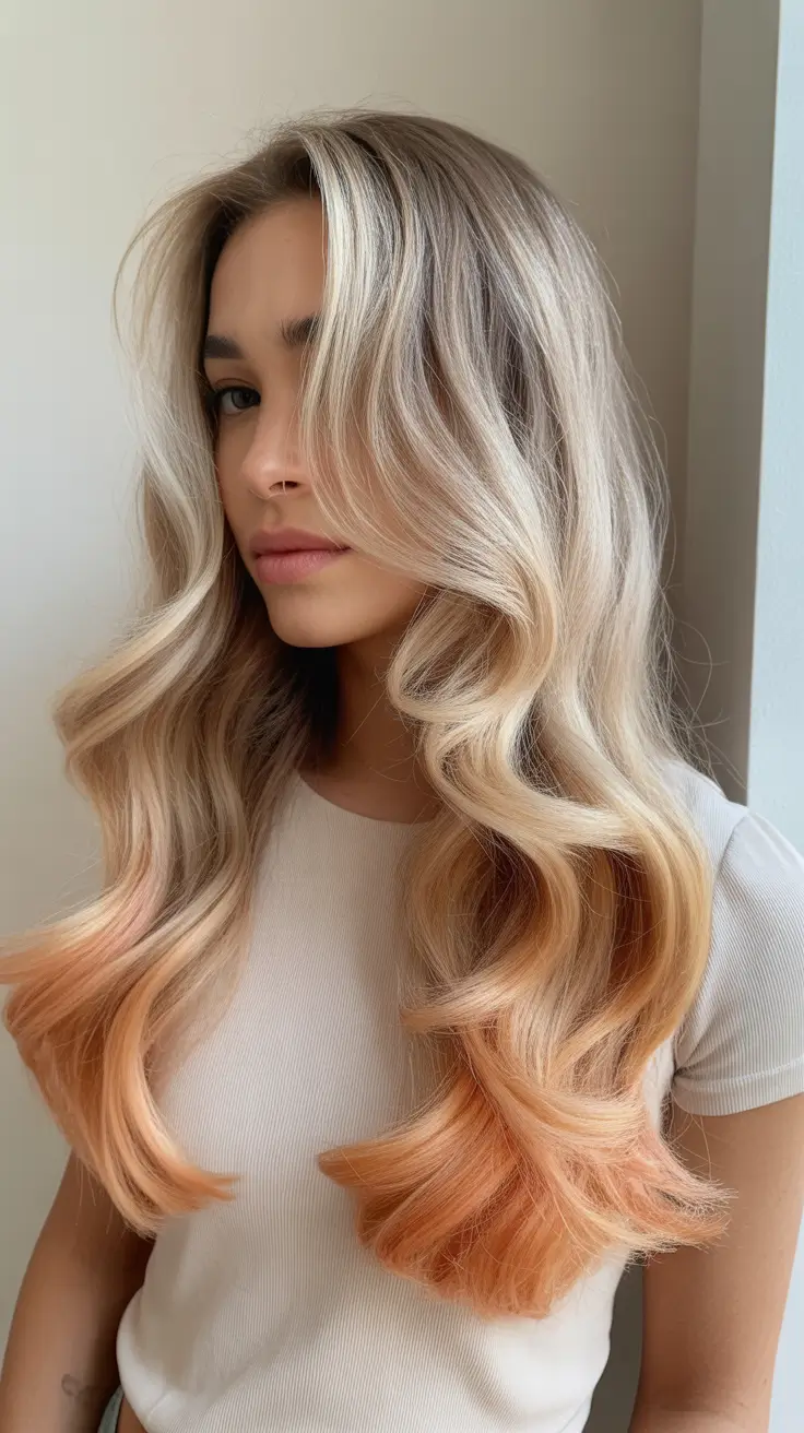 If you’ve been craving something light but wearable, this blonde-peach blend feels like the perfect way to brighten your look without going fully platinum.