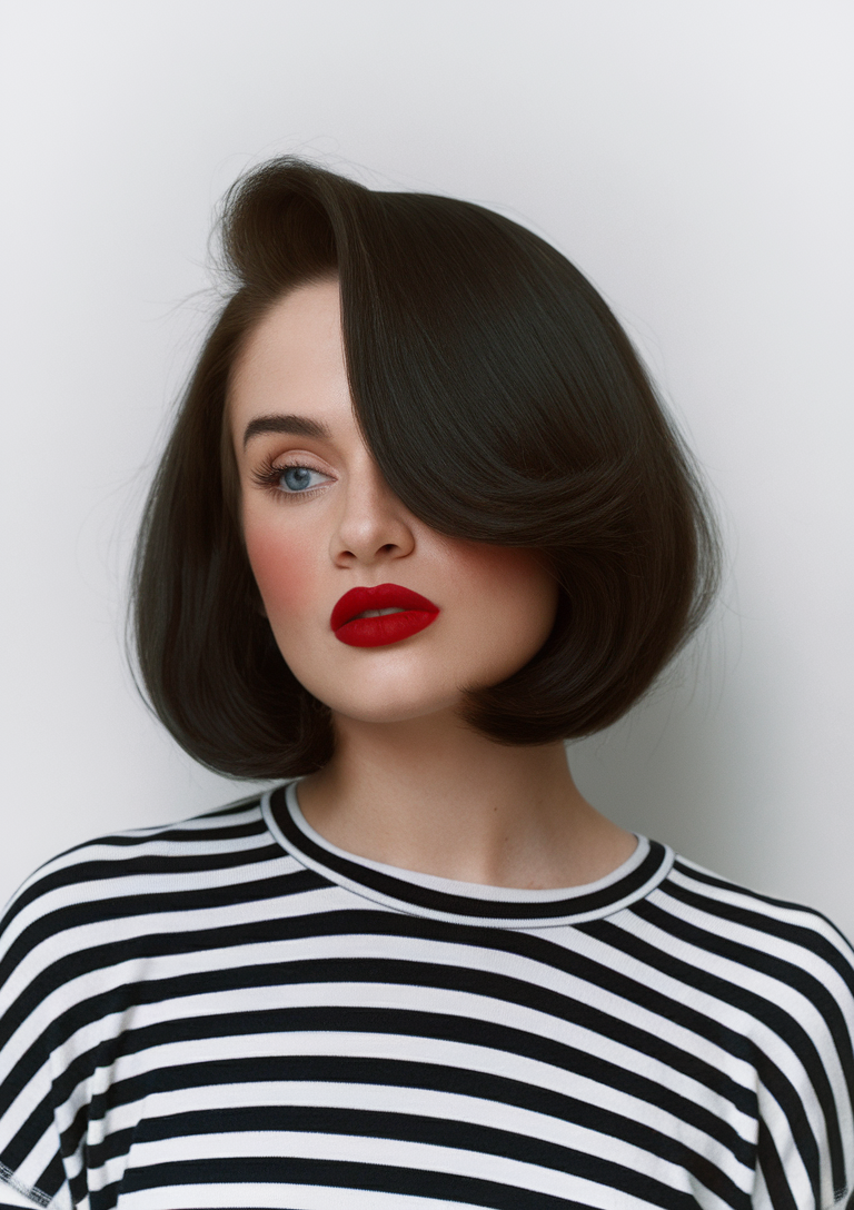 Aged bob that features a well sculpted deep side part with the ends of the hair slightly curled in a sculptured manner. His style has a clean refined feel to it which makes it perfect for woman who prefer modern hairstyles without forgetting to showcase their inner femininity. This style is perfect as it brings out the best out of dense curly hair. With thick hair this hairstyle helps in retaining volume and shine. The dark brunette shade compliments most boils, hence its perfect to balance elegance and fierceness during the summer. Sculpted option for women in the 2025 summer who desire movement without mess.