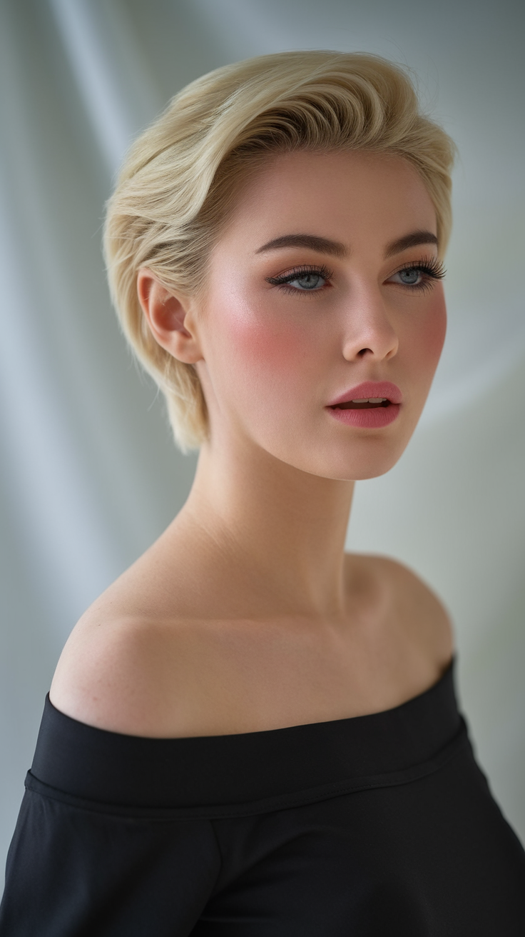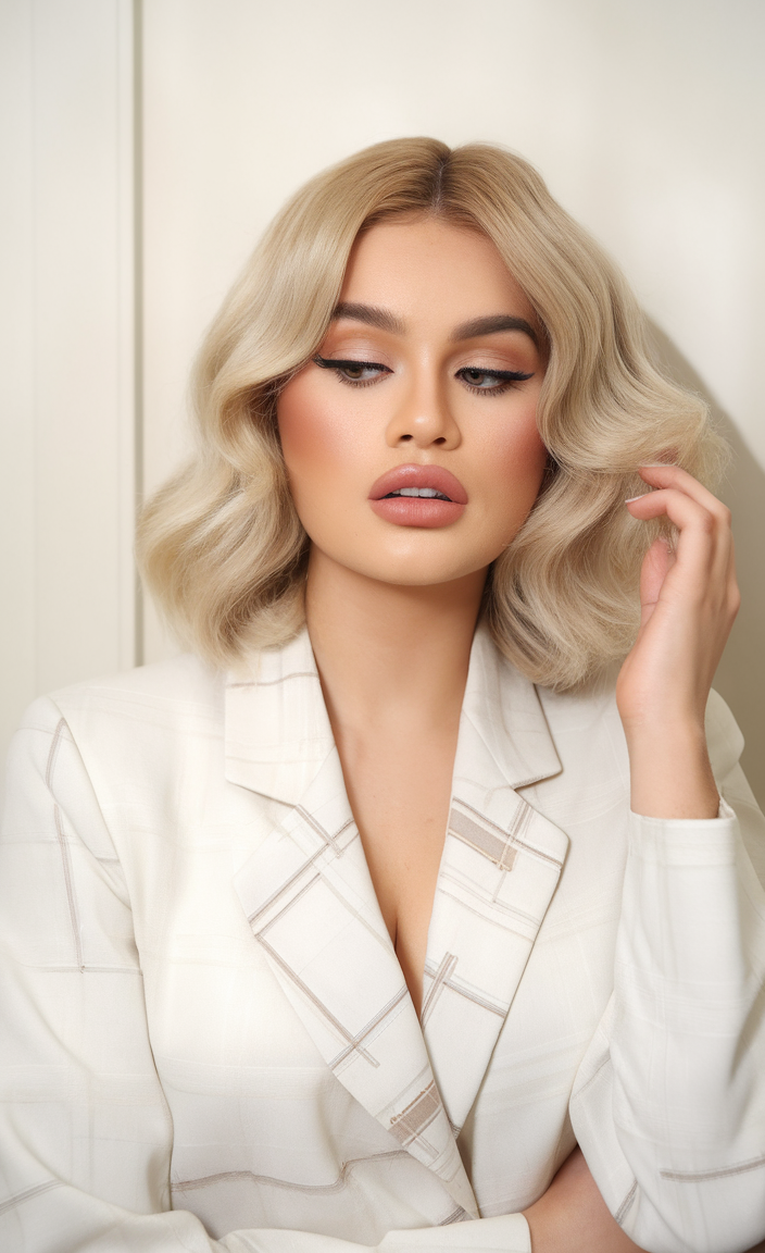 The look is completed with warm honey blonde retro waves that gently sculpted hair and give a delicate vintage feel. In 2025, women who want to add nostalgic charm with modern trends will love this style. Most wonderful of all, these soft and delicate tones are stunningly portrayed as warm honey blond color which further enhances the waves. A stunning addition in Best Short Haircuts for Summer 2025: trendy Ideas. especial for timeless glamour lovers.