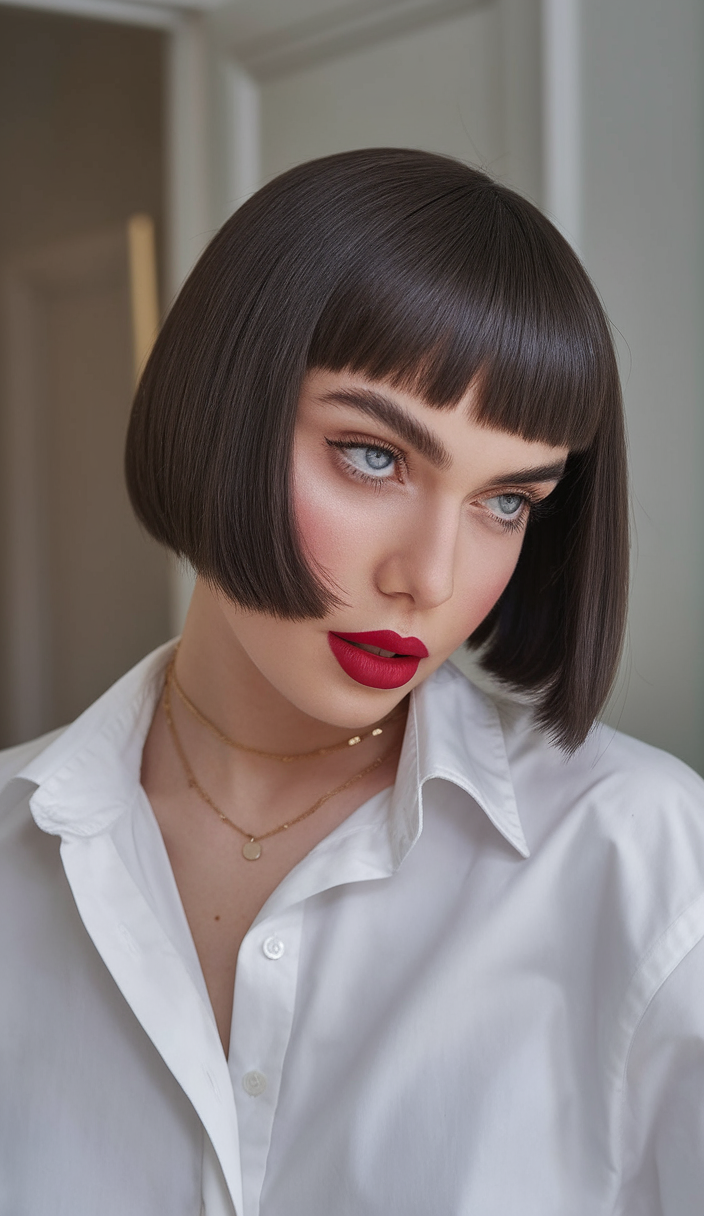 A boldly brunette bob tip with sharp defined edges boasts an ideal straight style for flaunting healthy hair textures. The brown rich tone is a classic finish for a confident brunette, while healthy hair and classic tone is a combination of confidence among women. 2025 Women’s modern styling options will comprise sleeker variations of this chin length bob poised to set a new precision styling standard. This is a chic but daring addition to the collage of The Best Summer 2025 Short Haircuts: Trendy Ideas.