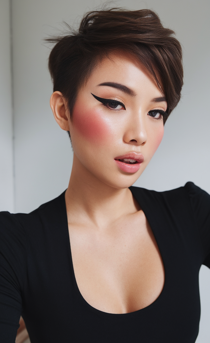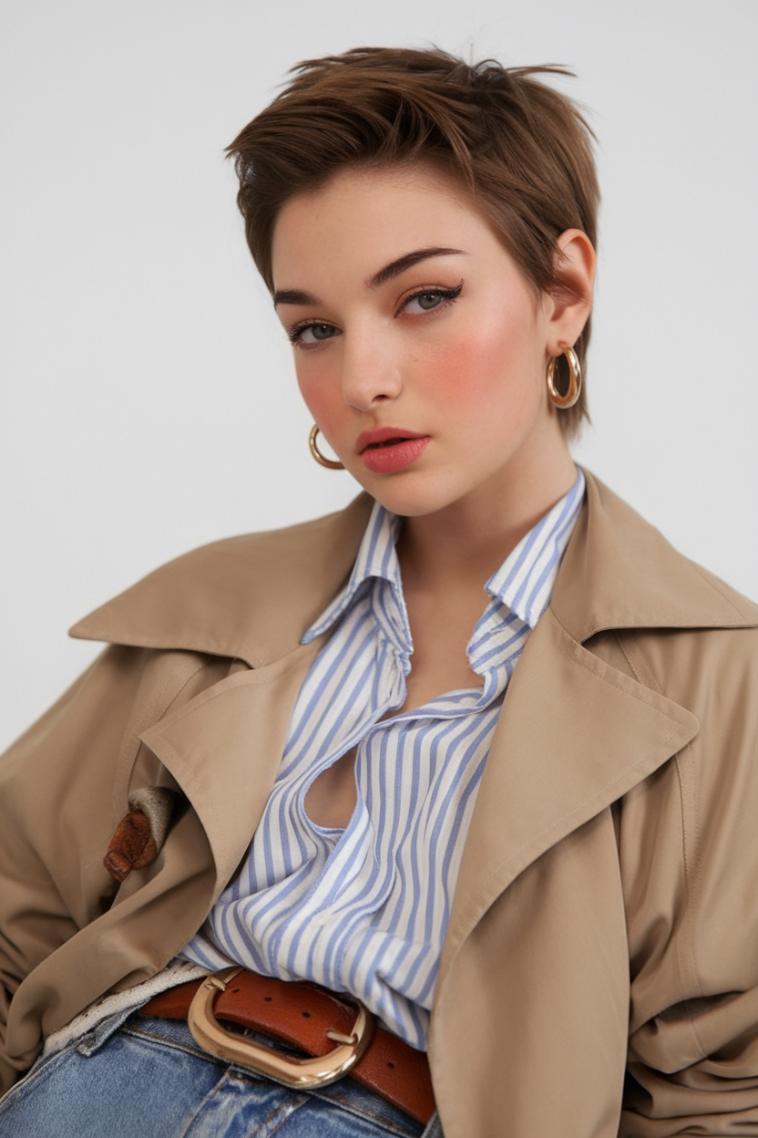 This pixie cut has added volume and texture through the back swept sculpted layers. The finish is a lovely natural brunette , which keeps the style earth toned, as well as the cut being suitable for both thick and straight types of hair. Alongside with being modern, this is also confident which is why it sits well with The Best Short Haircuts for Summer 20252025: Trendy Ideas. The hairstyle merges the classic form with new style. This look is ideal for women willing to welcome refined minimalism in 2025.