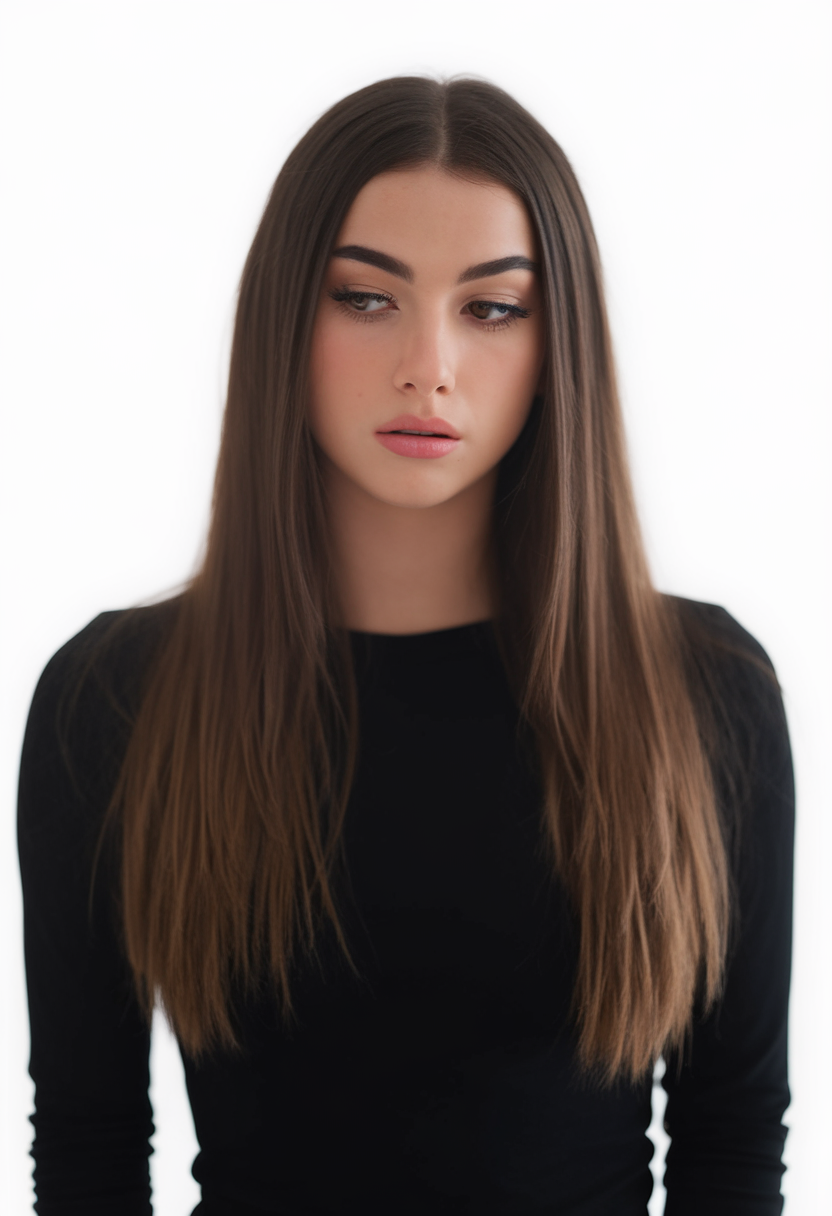 #23 Sleek Dark Brown Straight Hair with a Middle Part