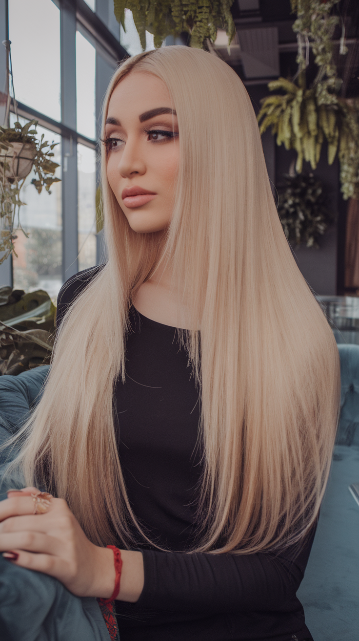 #4 Sleek Straight Platinum Blonde with a Middle Part