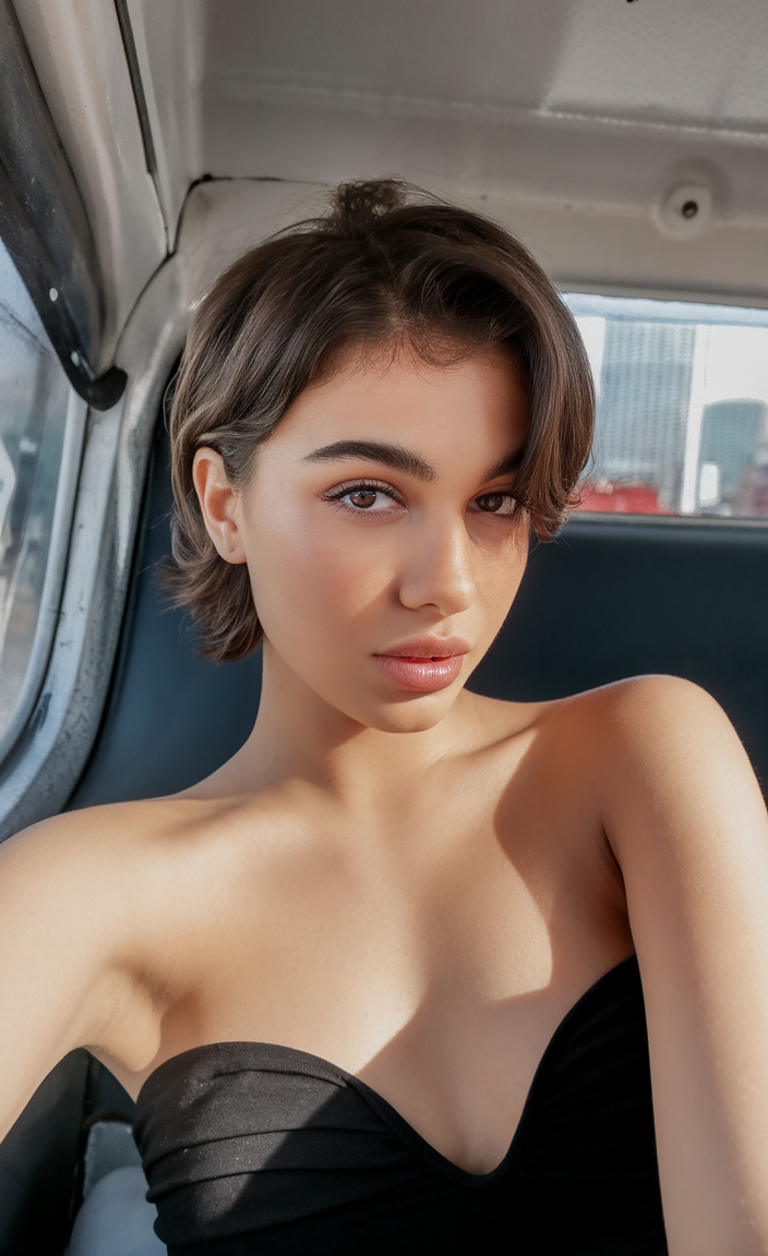 This short hair style features a soft, layered bob that adds subtle movement while keeping a structured shape. The rich brunette shade enhances depth and shine, making the cut look effortlessly sophisticated. A gentle side part gives a modern twist, making this short bob an ideal spring haircut for an oval face shape. This is a great choice for those who love low-maintenance yet stylish looks.