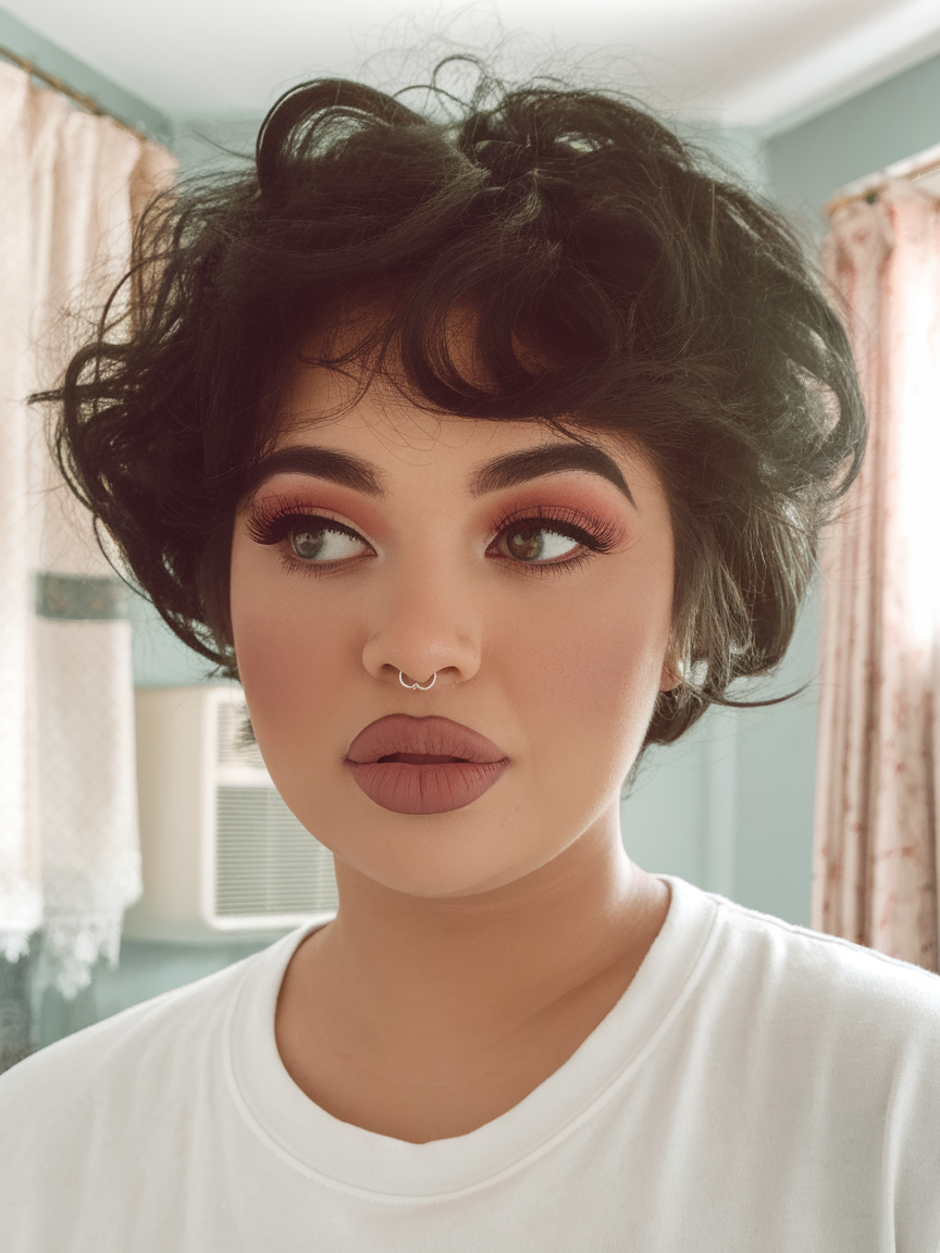 This short curly bob is full of volume and bounce, perfect for adding movement. The layered curls create a flattering shape that works well for round faces shoulder length styles. A fun and cute choice, it brings a fresh twist to spring haircuts for plus size women ideas 2025.