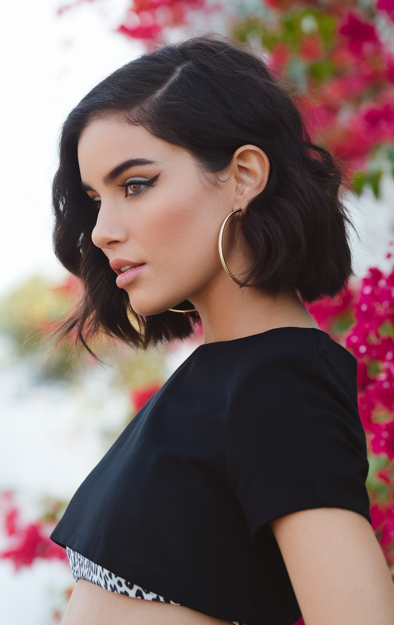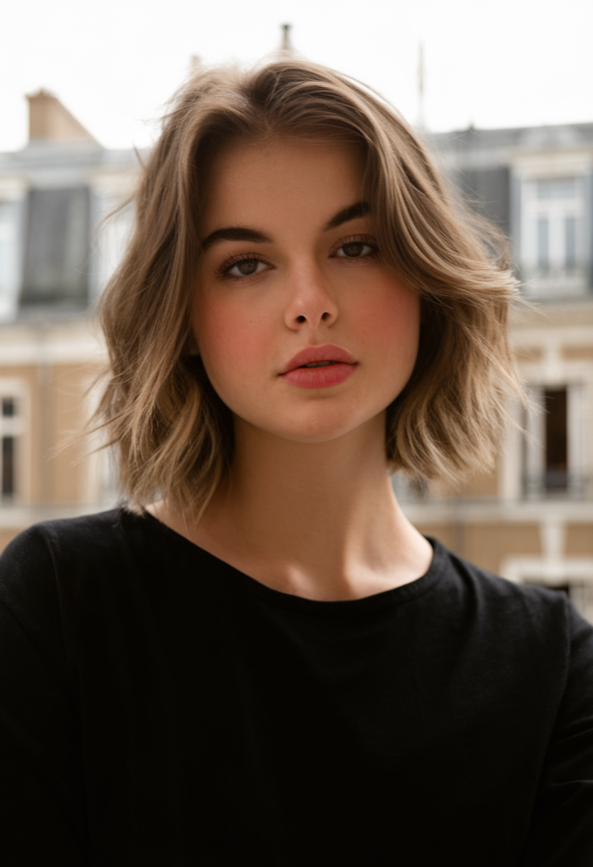 A short bob like this is one of the best styles for women who love a chic, low-maintenance cut. The soft waves add volume, making it a great option for thin hair while balancing a square face shape. The slightly tousled finish gives a relaxed yet stylish appearance. This shape short cut is a perfect everyday option that remains trendy and timeless.
