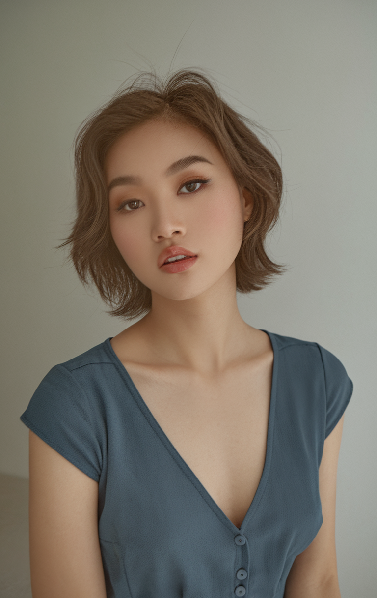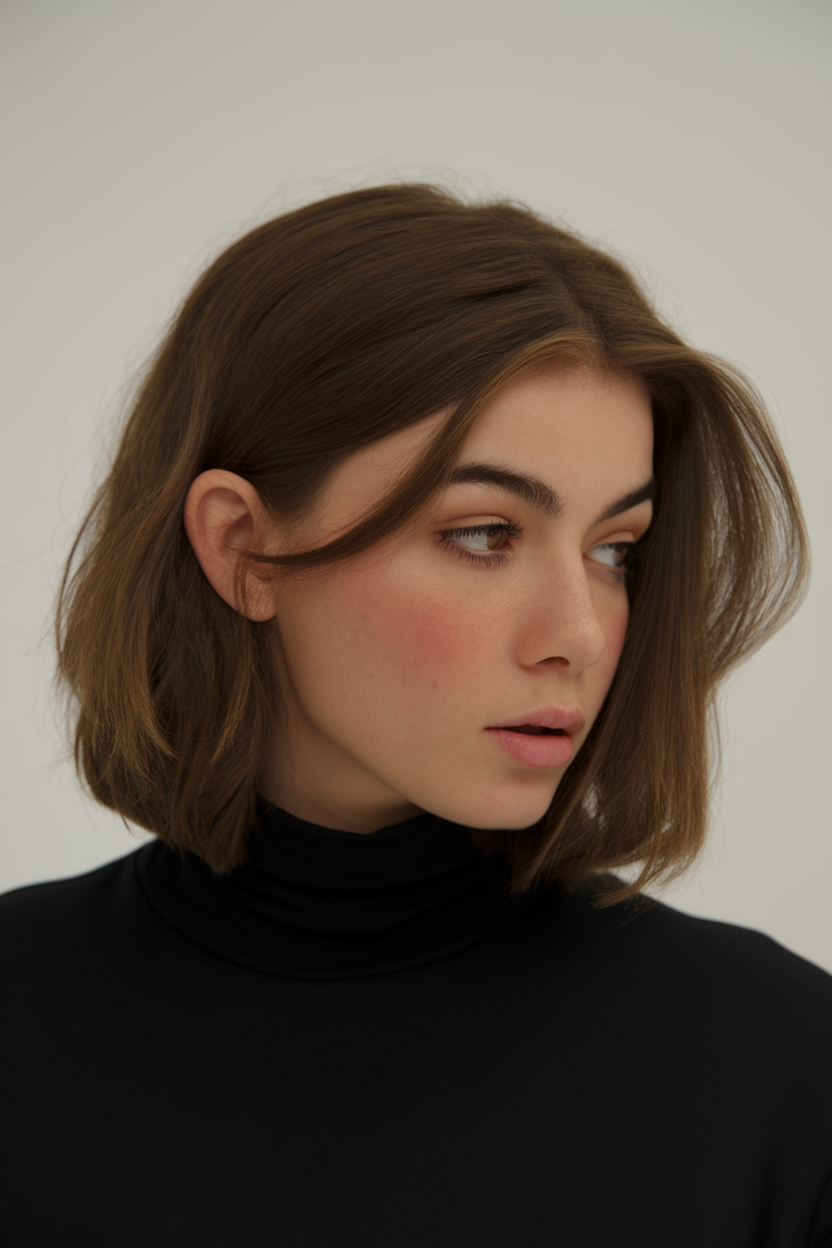 This bob haircut is a great short style for women with a square face, as it enhances the cheekbones while softening angular features. The slightly curved ends add a gentle touch, preventing the cut from looking too harsh. This shape short style works well with straight or wavy textures, making it a best choice for a timeless yet trendy look. The warm brown tone gives depth and dimension to the overall shape.