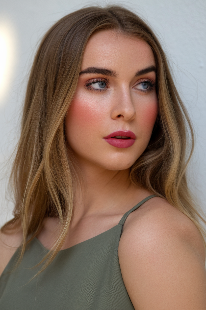 This medium length style features a soft balayage blend of warm brunette and golden blonde tones. The loose waves add texture and volume, making it a flattering shape for women medium look. The natural movement of the hair balances a triangle face shape, making this one of the best options in spring haircuts for triangle face ideas 2025.