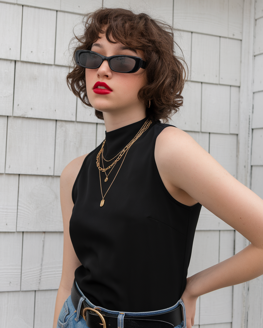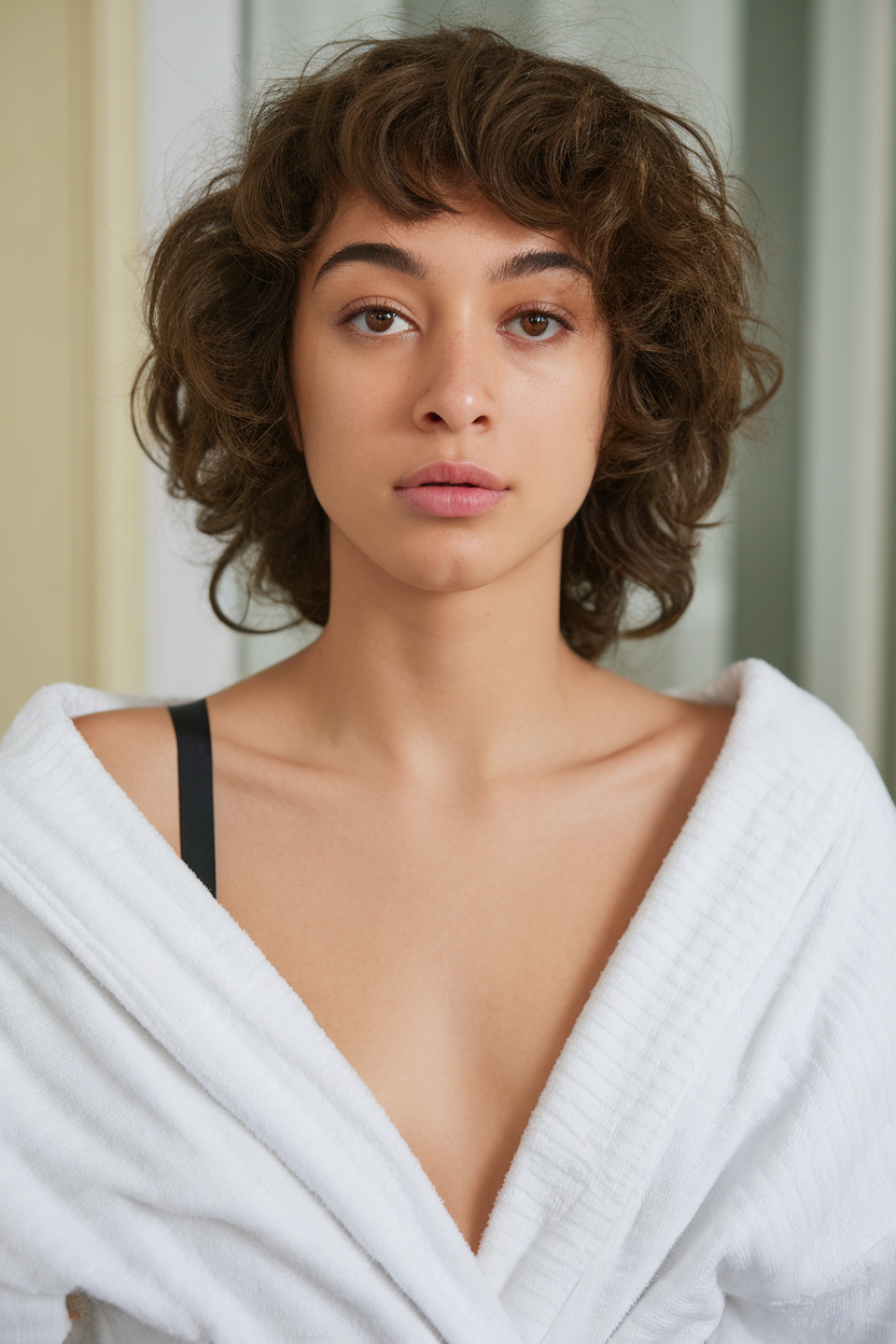 This short tousled bob is full of texture and movement, making it an excellent shape women medium style. The dark brunette shade enhances the choppy layers, giving a carefree and effortless look. This haircut is a stylish choice for those wanting a relaxed yet trendy vibe in spring haircuts for triangle face ideas 2025.