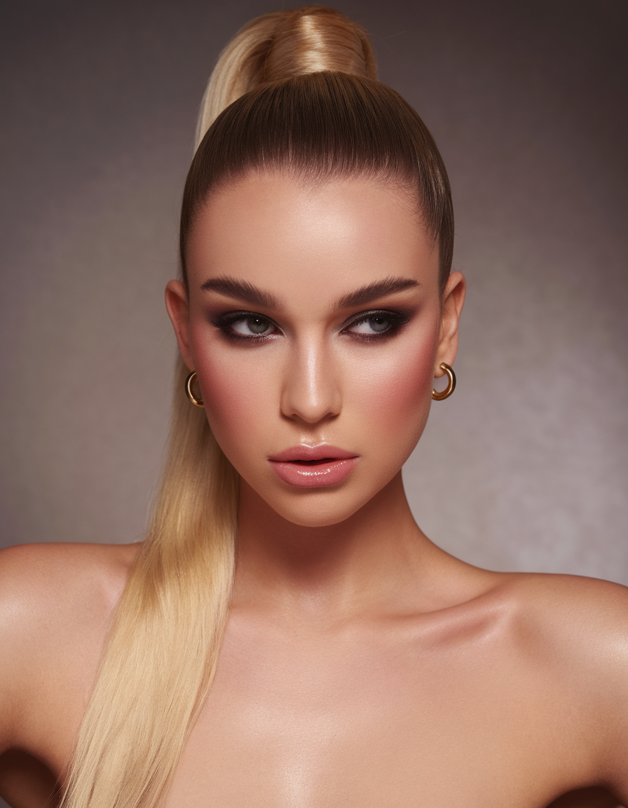 A high ponytail with a smooth ombre effect, transitioning from deep brown to ash blonde, creates a modern and stylish finish. The neatly wrapped base keeps the style clean and polished, making it an easy yet elegant choice for women over 30. This 2025 hairstyle suits both oval and round faces, enhancing facial symmetry. Perfect for trendy spring hairstyles, this long ponytail offers a balance of sophistication and practicality.