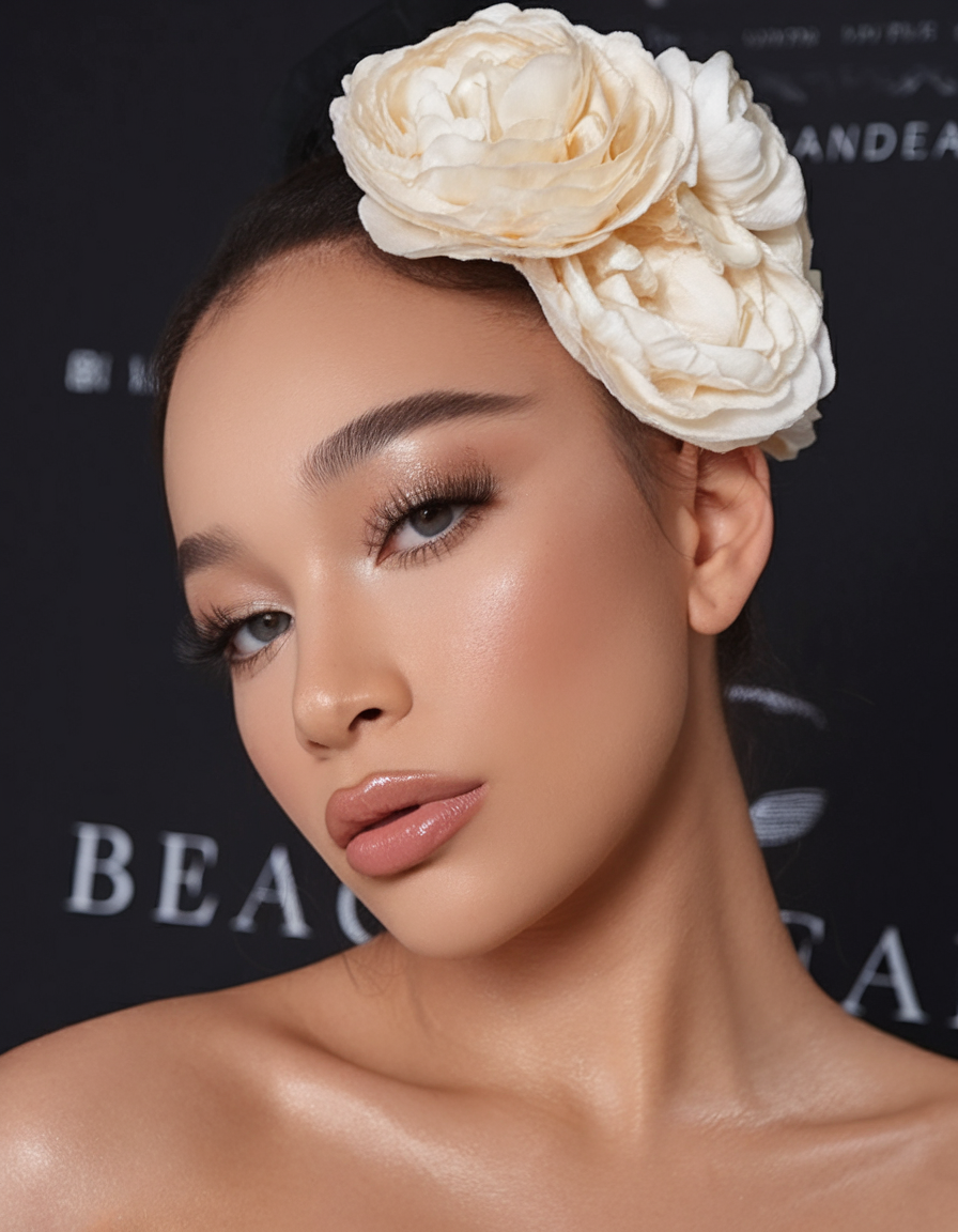 A sleek, low side bun with a large floral accessory adds a romantic and sophisticated touch to spring hairstyles in 2025. The deep brown hair is smoothly pulled back, creating a polished and refined look. The oversized cream flower enhances the style, making it an ideal choice for women over 30 attending special occasions. This trendy and elegant hairstyle beautifully frames the face, making it suitable for oval and round face shapes.
