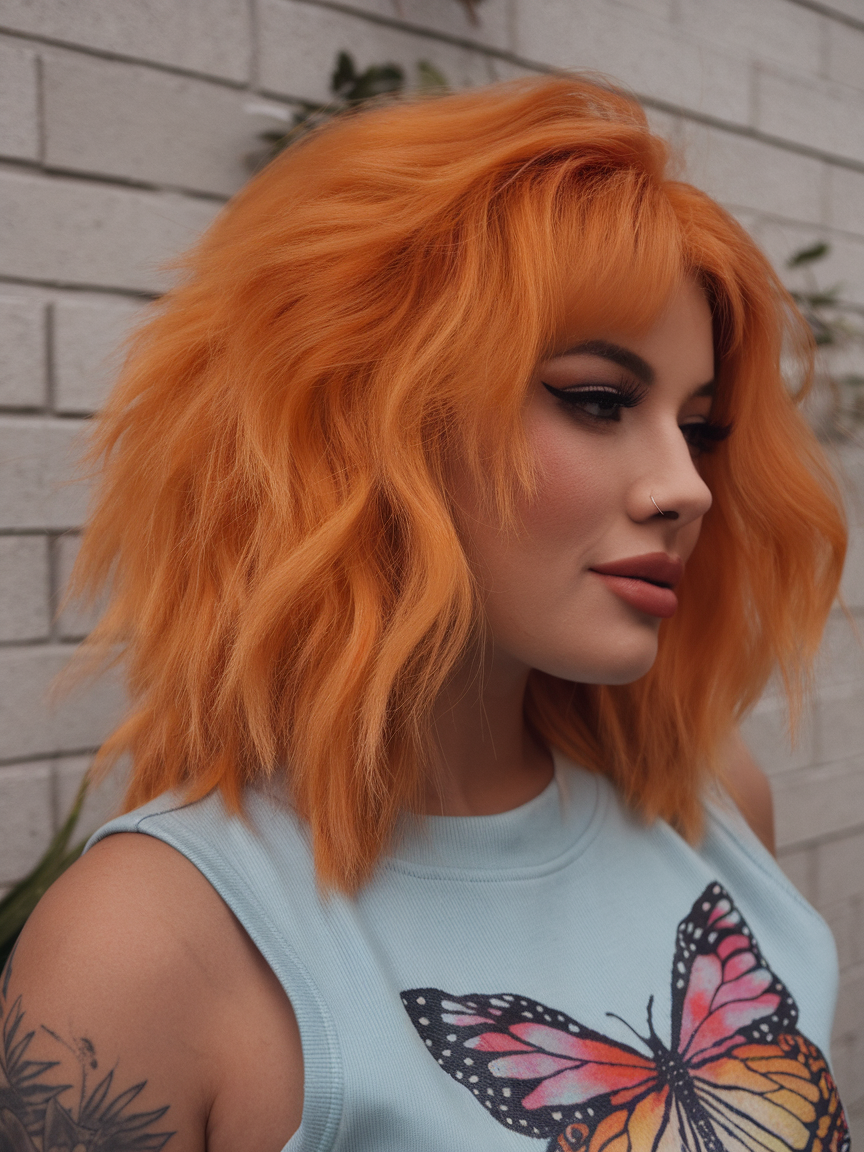 #15 Textured Orange Lob with Tousled Layers