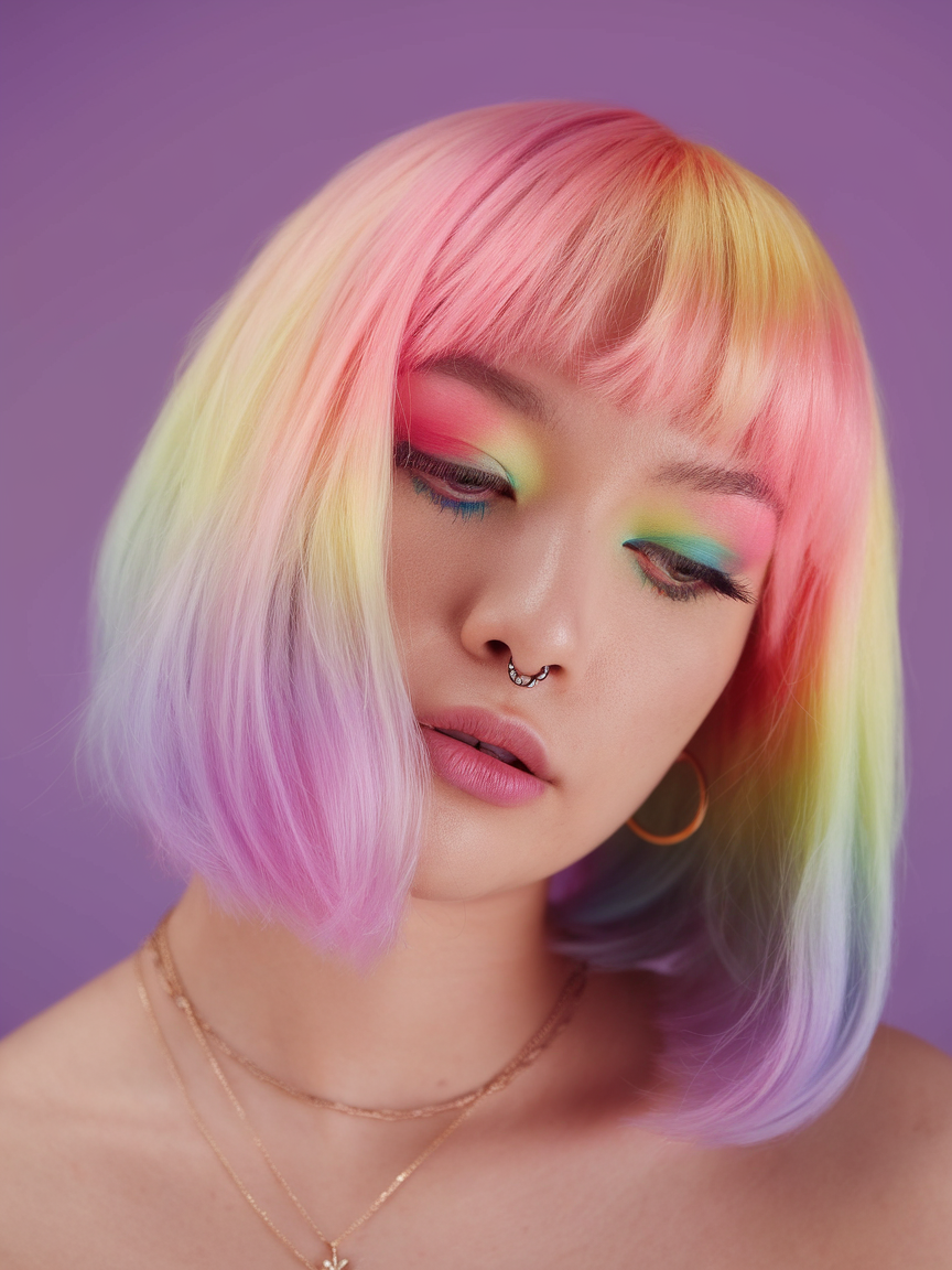#18 Pastel Rainbow Bob with Soft Layers