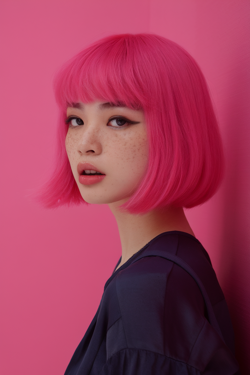 #2 Bold Pink Bob for a Trendy Statement