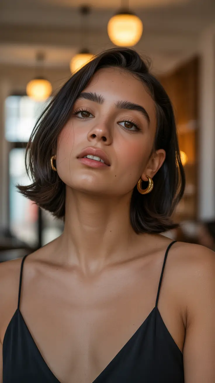 I personally consider this bob to be extremely flattering to a person with a round or oval shape of face. The part of side is structural and the clean lines of the bob serve to make the face longer. It suits the business environment well, and it may be worn casually. I also appreciate that it is so easy to go on a workday to a dinner date when I am wearing this kind of style- only some fine tuning and you are fine.