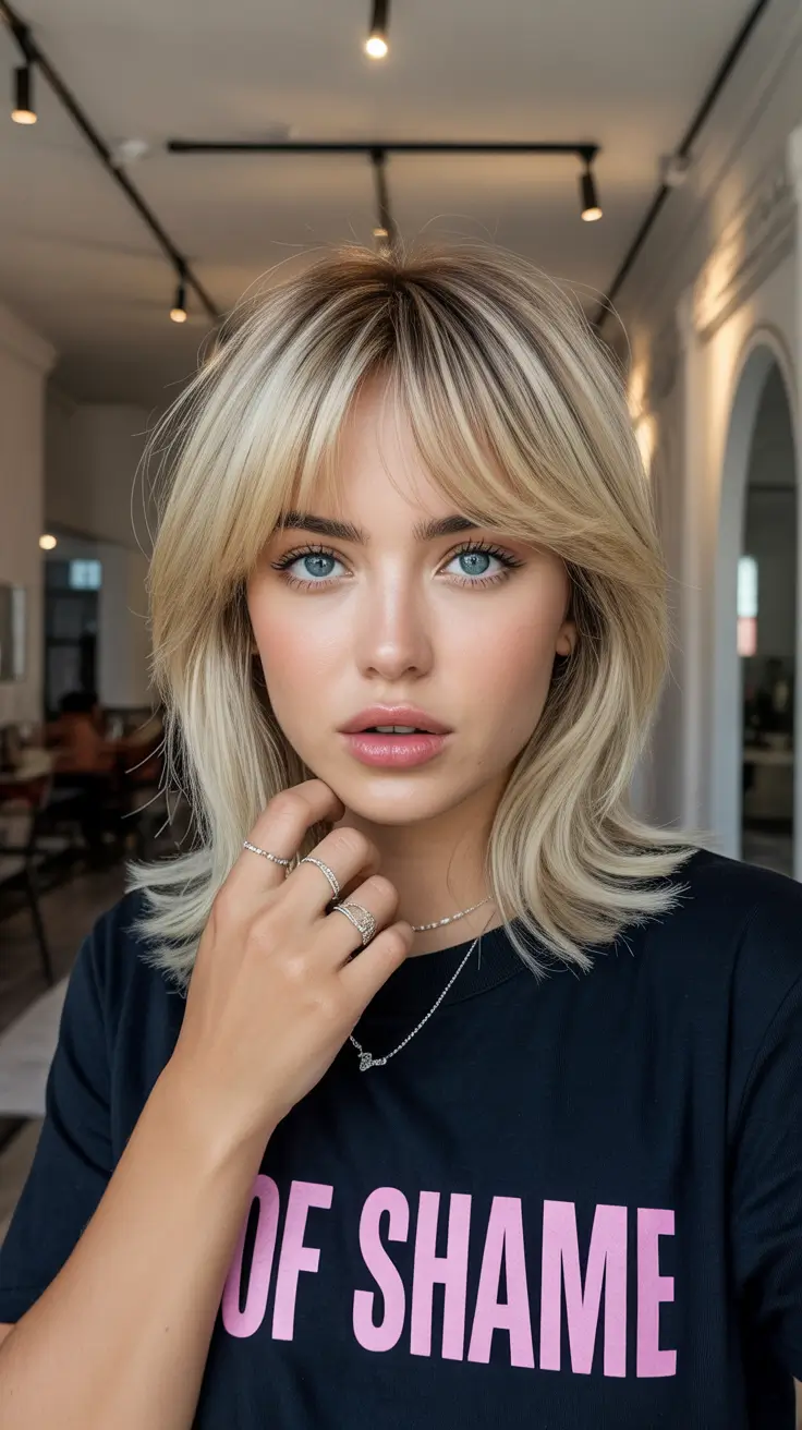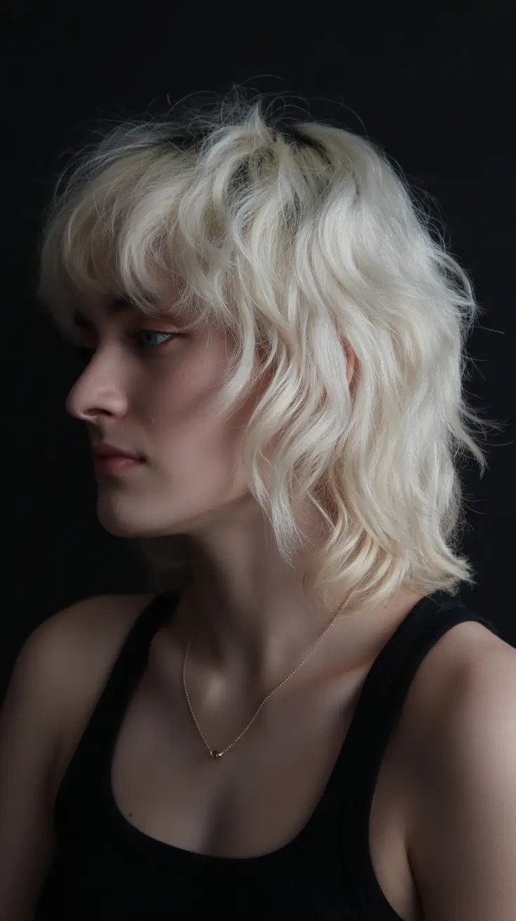 This is a stunning, full-length, mid length hairstyle that would suit any time someone wants to unleash some of the old Hollywood glamour to their 2026 appearance. The waves are very deep and luxurious as they fall perfectly down the hair making it look sophisticated and vintage. The platinum blonde color is also bright and the sunlight is reflecting on all the strands to make it shine further. It is a dream style of people with medium to thick hair since the layers and waves form the fullness and the movement, which is inbuilt. The depth and texture are also highlighted by the side part and make the style even more fashionable and glamorous.