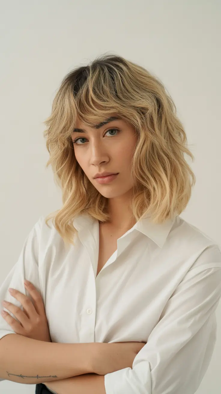In case you are beachy and carefree, mid-length hair with waves is the item to try in 2026. This appearance is relaxed but well-dressed and the waves add natural volume and texture. The hair is long, slightly above the shoulders, which makes it edgy and modern. It suits thick-haired women, or those who want a low-maintenance style, a little volume at the crown and casual curls that do not need much effort to achieve.