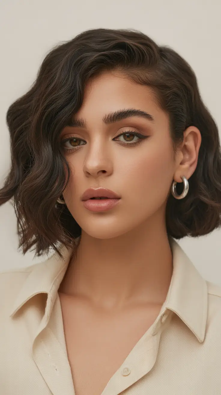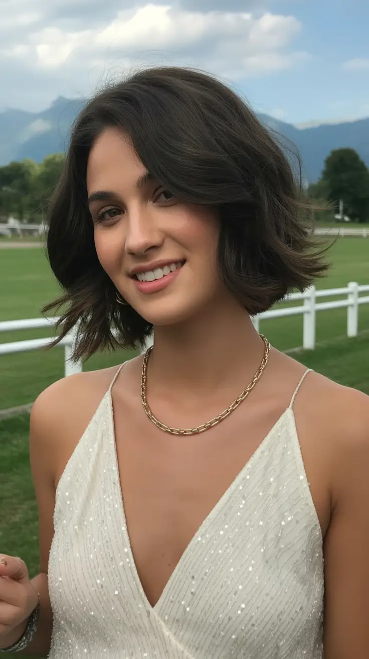 This is a 2026 bob haircut that is all volume and motion. Having a perfect balance of layers and soft waves, this style gives a fresh and modern touch to the style and remains attached to the traditional sophistication. The hair is layered to provide some depth and the natural wave pattern brings out a casual feel. The dark chocolate brown with faint highlights also forms a beautiful contrast complementing the layers to make the bob look fuller. The side section is the main component of creating even more volume on the top which is particularly appealing with women with a round face or those who need to be taller.