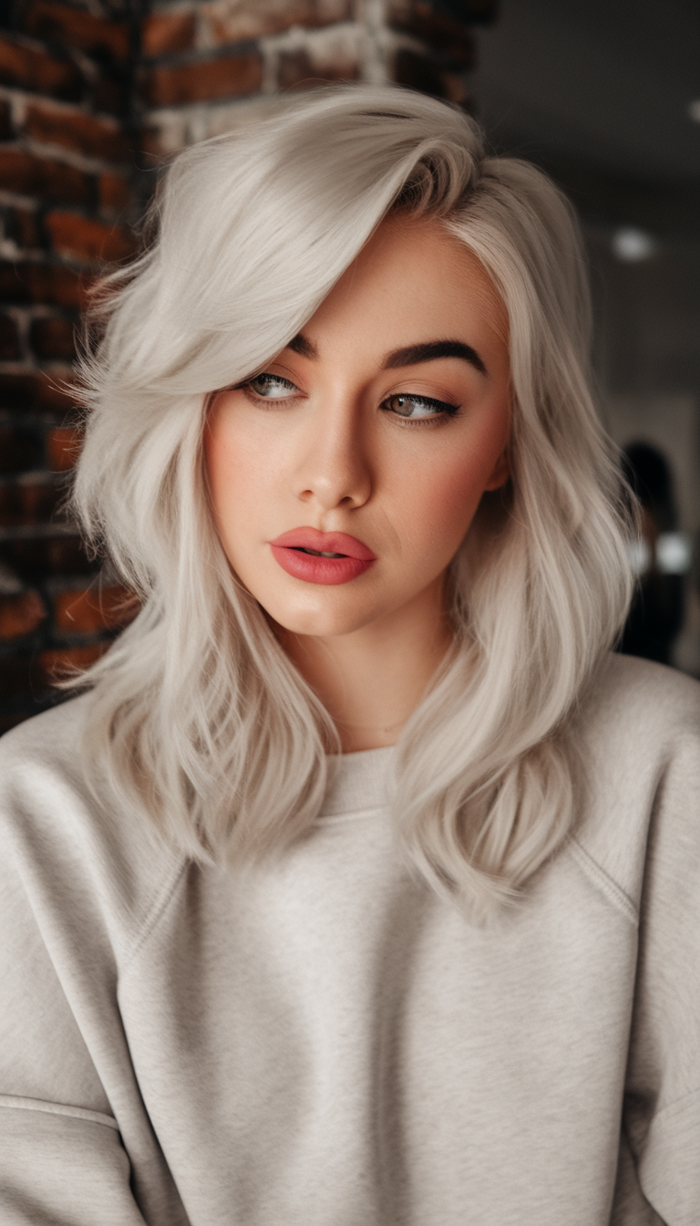 This short bob features choppy layers that add texture and movement to fine hair. The tousled, wavy styling gives it a fresh, carefree vibe, perfect for spring. It’s a flattering choice for those wanting a shoulder-length cut with a modern edge.