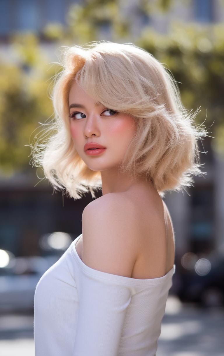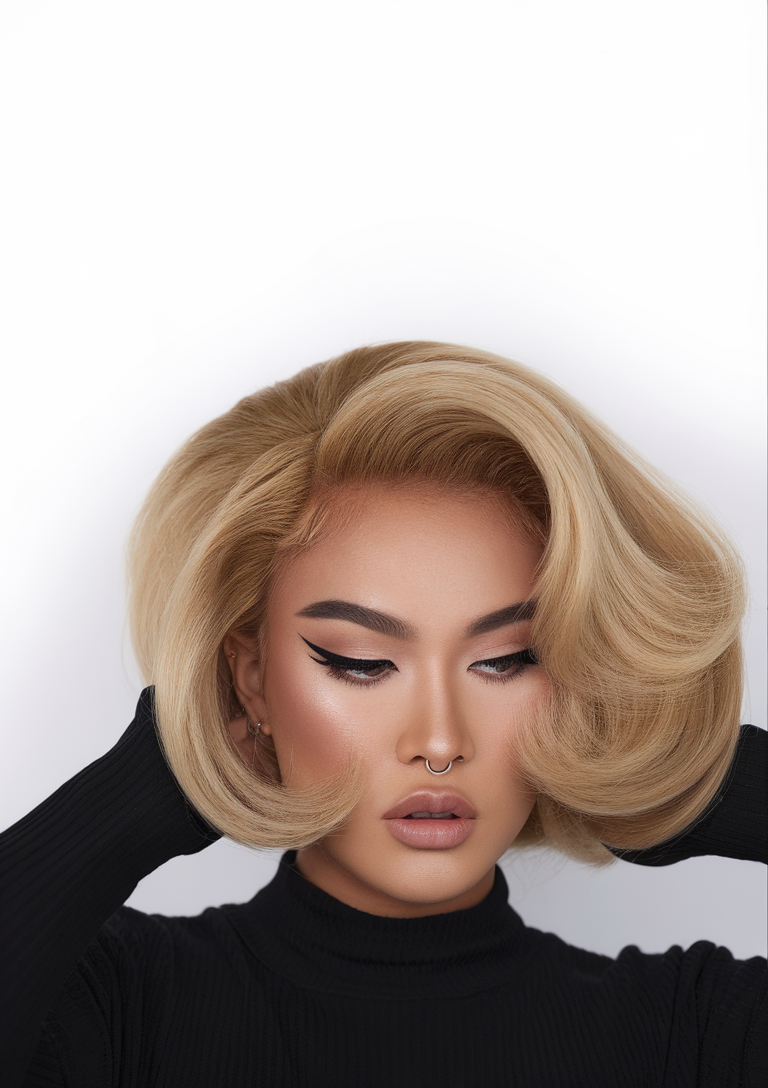 This short bob is styled with voluminous, retro-inspired waves for a bold and glamorous look. The structured shape adds density to fine hair, making it appear fuller and more dynamic. It’s a perfect low-maintenance yet statement hairstyle for spring.