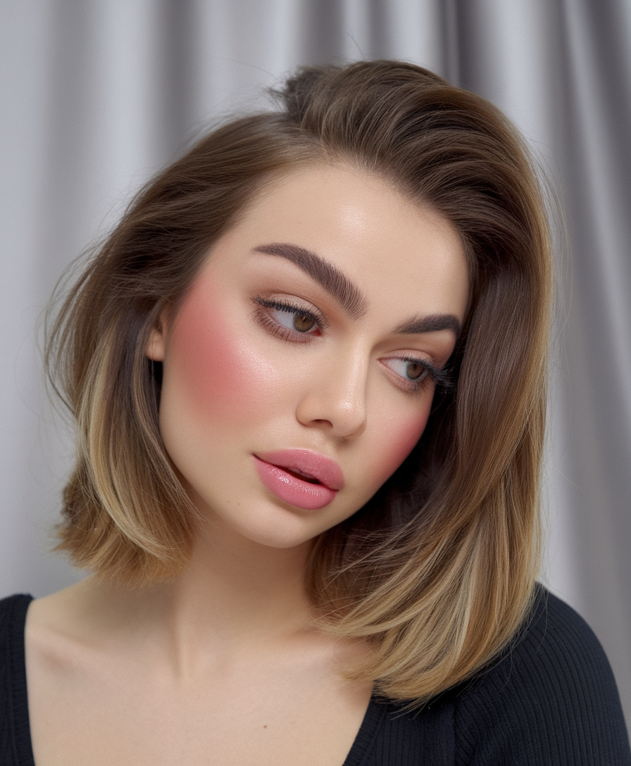 This blunt lob is styled with subtle balayage highlights to add depth and dimension to the hair. The shoulder-grazing length keeps it versatile and low-maintenance, while the soft ends provide a natural finish. It’s a modern and flattering haircut for spring.