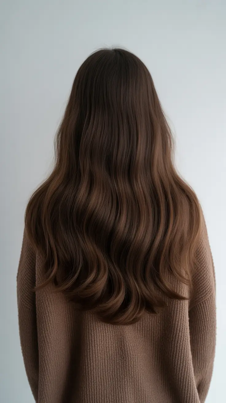 The style seems like the description of Rich grace – shiny, smooth waves that demonstrate the richness of Dark brown hair colors chocolates with a shiny touch. The shade lies in that perfect in-between of Natural richness and warmness that does not drown the background in lighter ribbons. Such a brunette is always extremely timeless with such smooth and sculpted motion, I say.