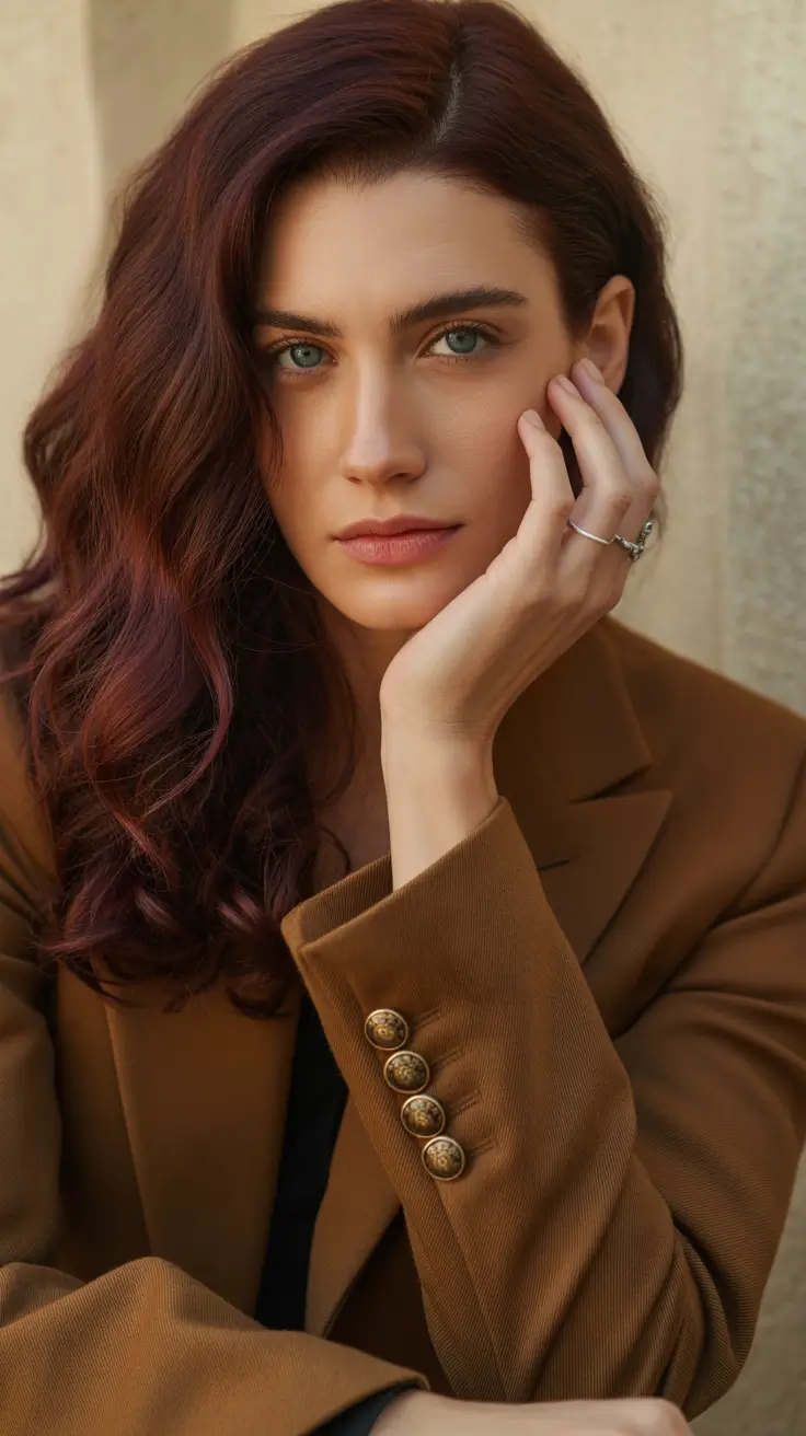 When there is a brunette shade of wine, I always stop. This one uses the traditional Brown foundation and covers it with a smoky berry finish making it velvety to touch and not too obtrusive. It remains attached to dark brown hair color 2026, yet, it has a gentle Red twist, which is rebellious and exquisite. The waves provide the color with the freedom to lengthen and display its richness.