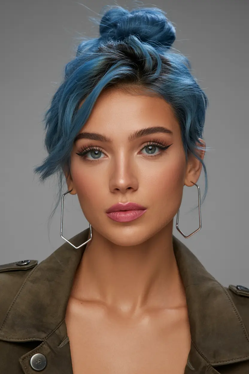 Moody Blue Sleek Bun with Urban Edge