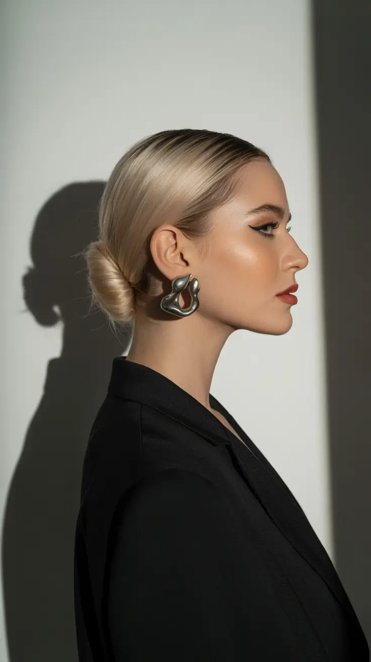 Edge control is everything here – I’ve seen stylists recommend Ebin 24 Hour Edge Tamer for that precise finish. A strong gel at the roots and a fine-tooth brush will help you achieve that smooth surface before wrapping the bun tightly. If your hair is naturally textured, this style can highlight that beautifully when shaped with intention.