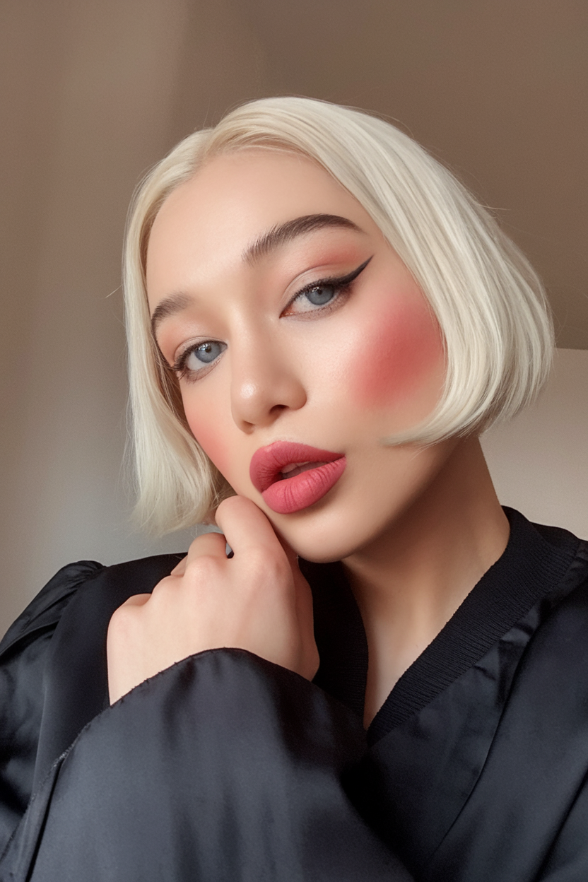 This short bob boasts a blunt cut with a silky smooth finish. The light blonde color and minimal layering create a bold, refined look that suits straight hair. Perfect for women with a modern aesthetic, this hairstyle adds a polished edge to any spring wardrobe.