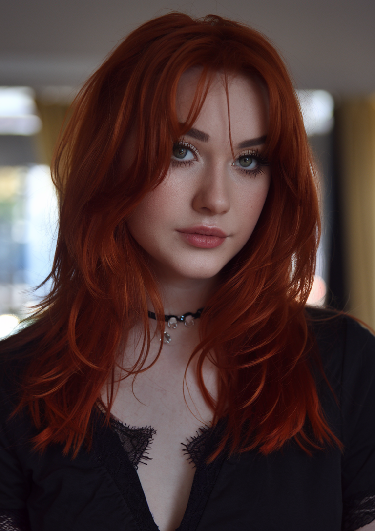 This bold, rich red shag haircut with layered texture offers volume and drama. The vibrant red color is warm and eye-catching, making it a perfect choice for winter when you want a bold yet cozy look. The messy, layered structure gives the hairstyle a playful yet sophisticated edge, making it ideal for anyone looking to add a fiery touch to their winter palette.