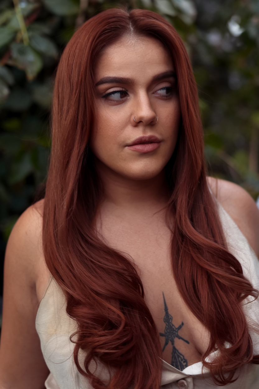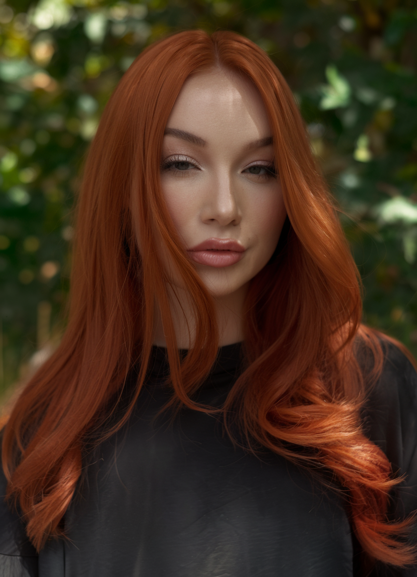 This fiery red look stands out with its smooth, soft texture and vibrant hue. The rich red shade enhances the natural shine of the hair and adds a bold, confident vibe to the overall look.