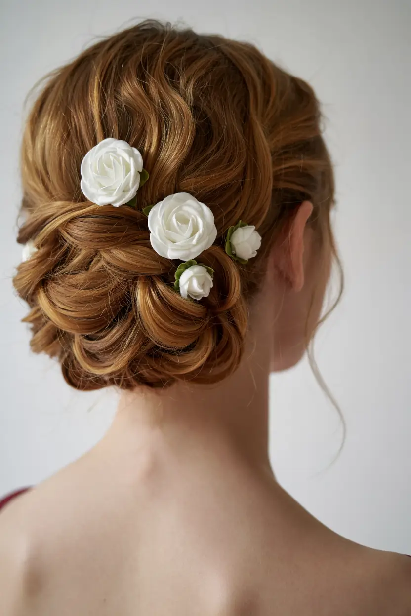 Fake flowers stay secure during events and create stunning photo results. Secure the bun pins behind its folds to stay hidden.