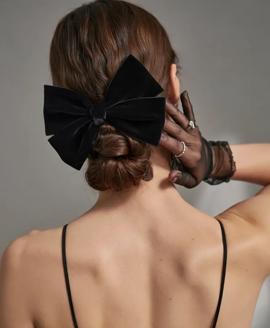 A low bun with velvet bow keeps its timeless appeal while this style delivers it perfectly. It’s simple, yet undeniably cute. The wrapped hairstyle keeps the bun securely positioned near the base of the head with a stylish elegance that speaks without yelling. The bow itself? This powerful black velvet bow transforms an ordinary look into editor-quality fashion. The style works best for both long and medium hair lengths at elegant events or when wearing a backless dress.
