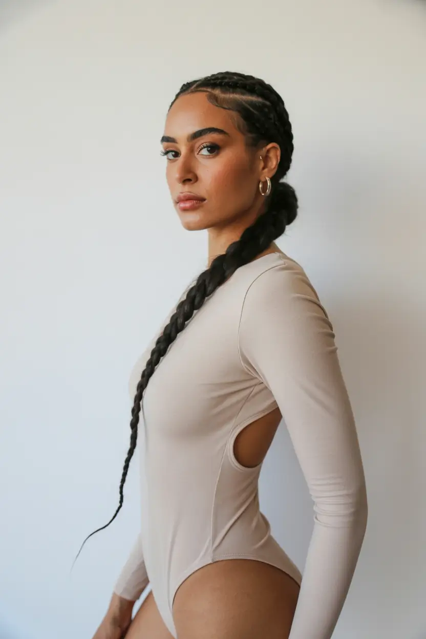 Clean, polished, and dramatic in the most understated way – this long Side braid pulls everything back into a smooth foundation before cascading down in one thick plait. It almost nods to Lemonade energy, but refined and streamlined for 2026. The parting is sharp, the finish glossy, the vibe quietly powerful.