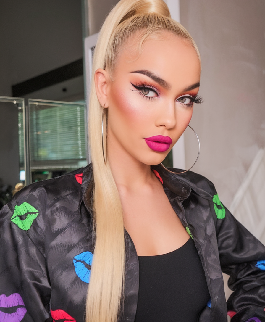 This long, sleek ponytail is a classy and modern style that exudes confidence and elegance. The platinum blonde hair is pulled back tightly, ensuring a clean and polished finish. The ultra-straight lengths create a dramatic, high-fashion effect, making this an expensive looking choice for any occasion. This timeless look is perfect for those who love bold, statement hairstyles.