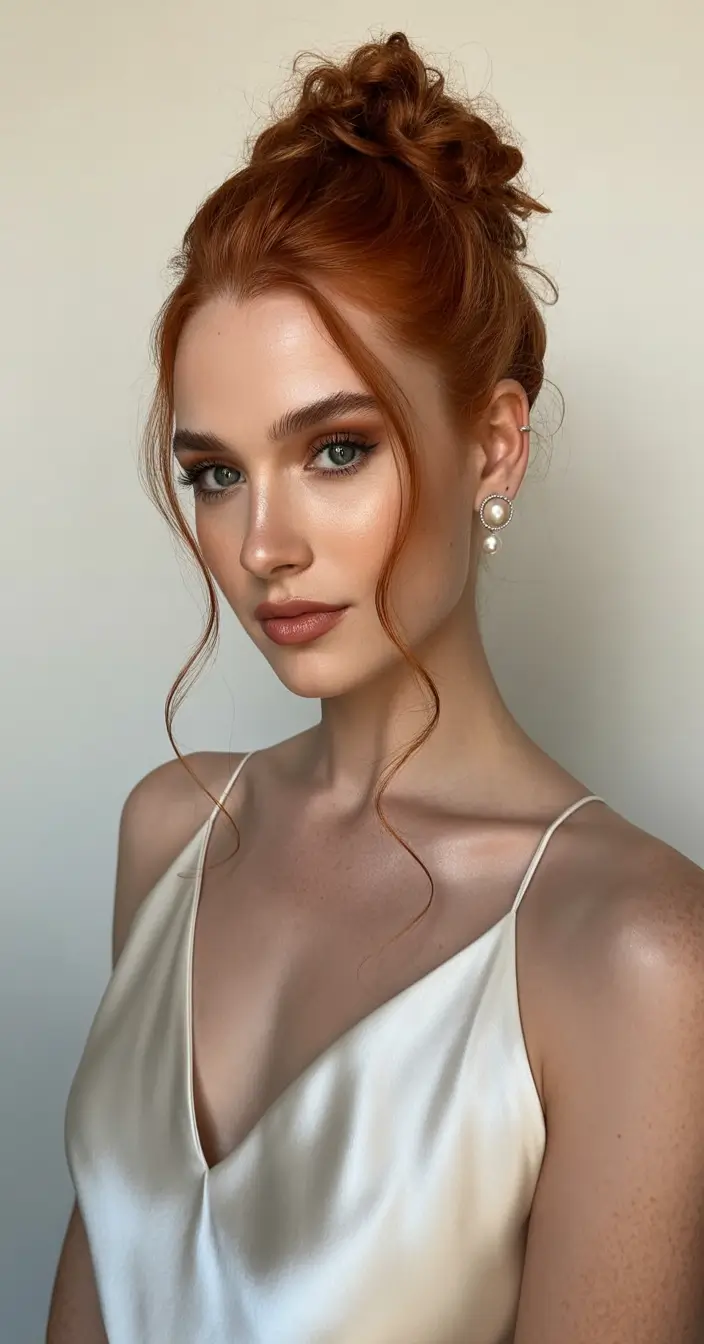 Picture this: a gentle auburn glow swirled into a polished updo. Volume stays high at the crown, while a couple of loose tendrils frame the face like fallen leaves in slow-motion. It’s cozy, warm, and still looks sophisticated enough to stroll a golden campus quad. If you want a hairstyle that feels both vintage and totally now for 2025, this is your cue.