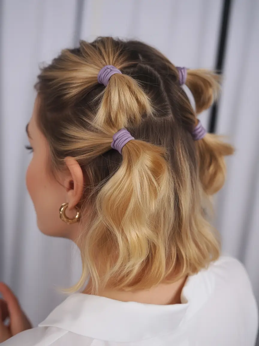 Picture a wavy bob that suddenly gets spruced up by a row of bright elastics. Those mini knots give the bob a cute, lived-in vibe—like you curled it on a dare but then nailed the look effortlessly. It’s bob 2.0: more bounce, more personality, zero layering anxiety.