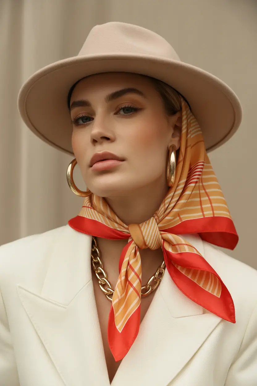 Now, this is where fall hairstyles for round faces 2025 level up to high fashion. Wrapping a silk scarf under a structured hat instantly adds the angles a round face loves. Think of the scarf as a cap for the hair, keeping the base neat while the top stays bold and streamlined.