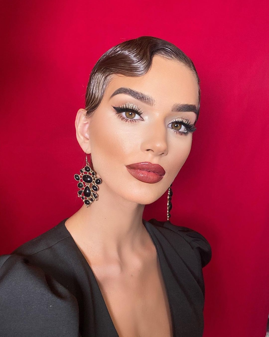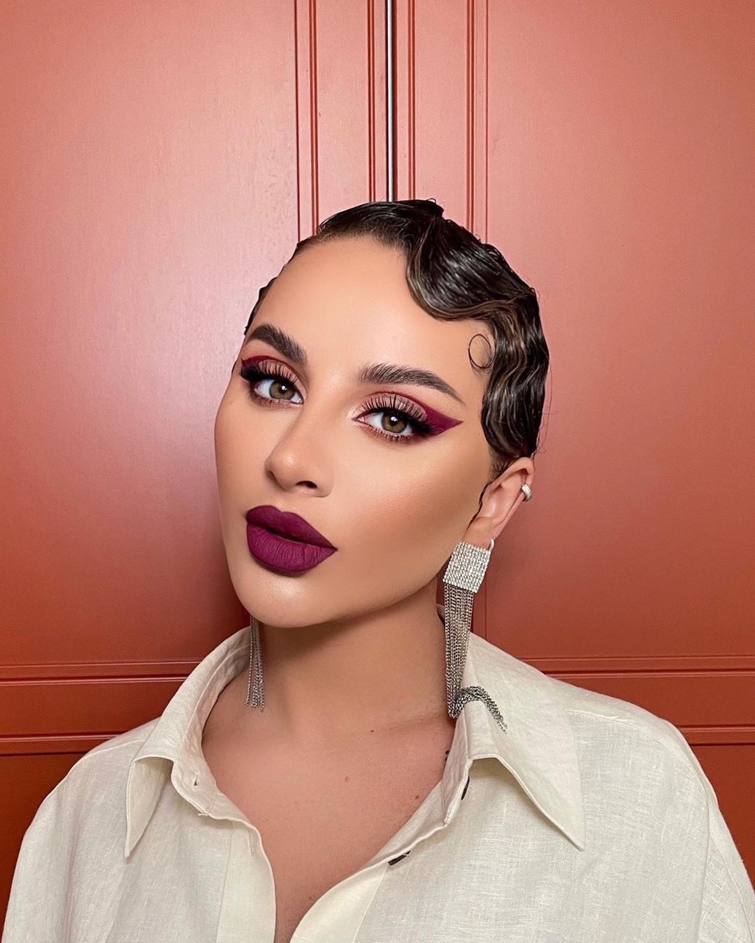 This short hairstyle showcases precise finger waves that are slicked back for a sleek, dramatic appearance. The glossy finish emphasizes the sculpted details, making it a perfect choice for short hair tutorials. With its bold and refined appeal, this look is a modern take on the classic 1920s finger waves.