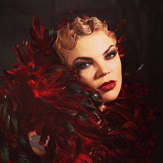 The short haircut is enhanced with fiery red finger waves, sculpted to perfection for a timeless 1920s-inspired style. The glossy red finish amplifies the boldness of the design while emphasizing the precise wave pattern. Perfect for those seeking short natural hair styles with a vintage flair.