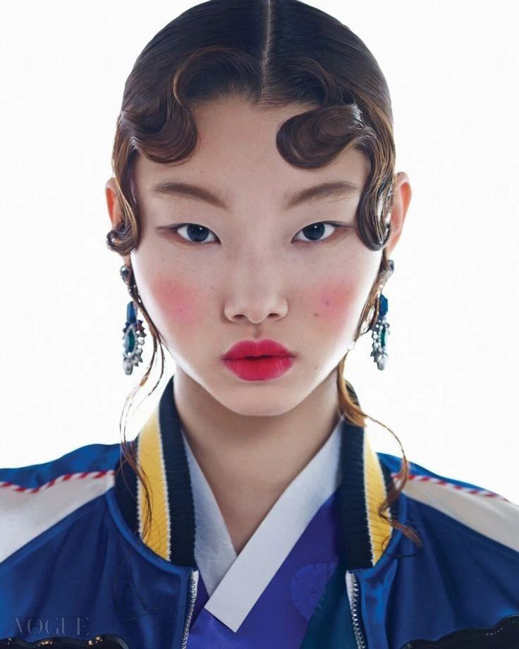 These finger waves are styled with a wet-look finish, giving the hair a fresh and effortless shine. The soft waves complement the natural texture and shape of short hair, emphasizing a minimalist, timeless appeal. Ideal for a classic look with understated elegance.