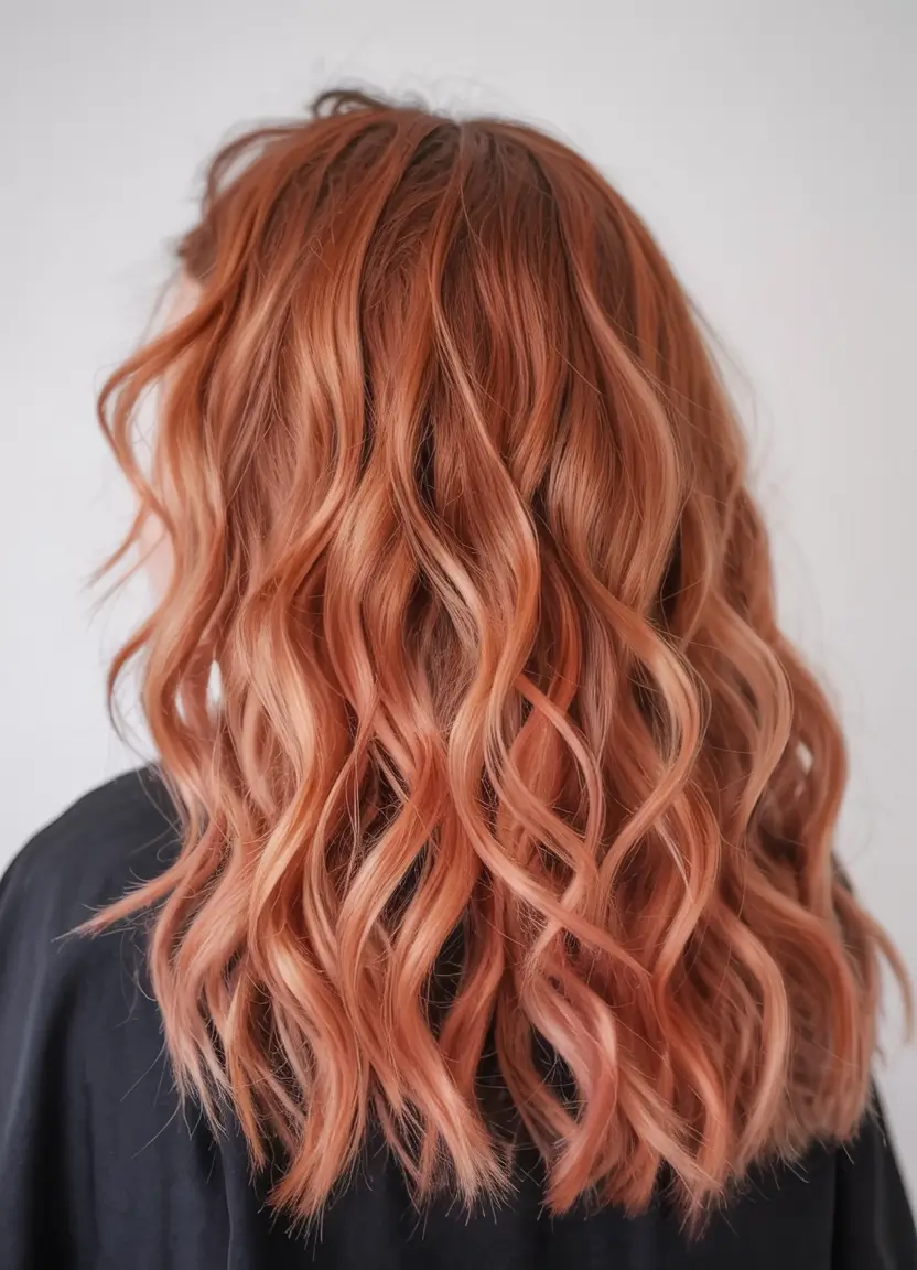 The subtle yet rich rose gold coloring merges beautifully with soft waves while it brightens up the whole hairstyle with soft metallic luster. The face receiving optimal enhancement through curtain bangs which suit almost any facial structure. Light-skinned and medium-skinned women who seek romantic yet fashionable hair colors should consider this particular shade. The season brings exquisite hair highlights that serve as sophisticated tribute to colorful tones which we can experiment with for summer 2025.
