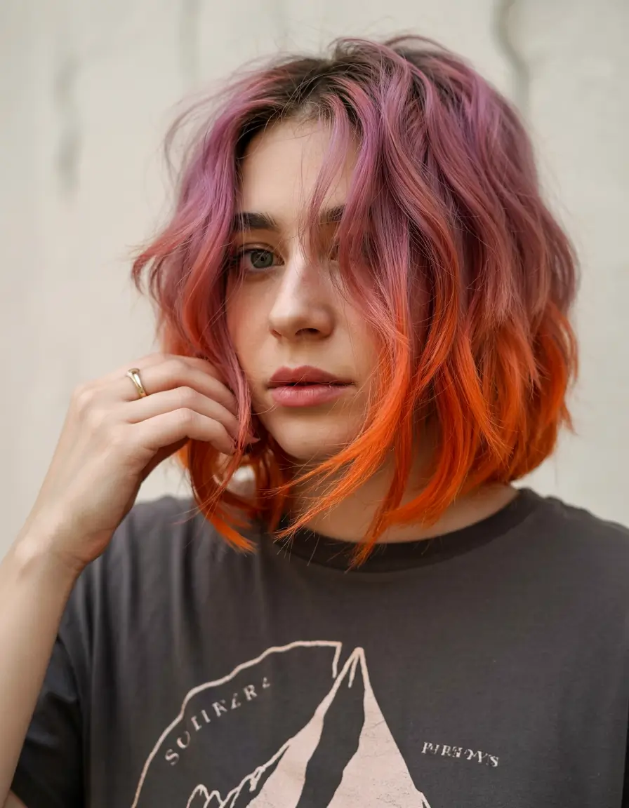#13 Purple to Tangerine Gradient on Wavy Bob