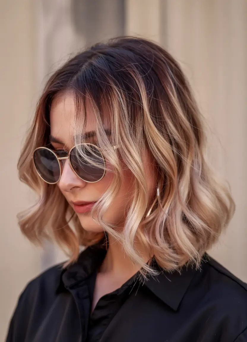 The gradient-smoothed worn-down bob extends from dark brown roots to finish as silvery blonde tips below the chin area. The style features delicate textures together with lightweight appearance which gives an updated modernized version of traditional highlights. Women who want a quick summer transformation combined with short brown length will find this style beneficial. The style turns out to be an unparalleled attractive hair highlight concept which makes this one of the most practical choices for summer 2025.