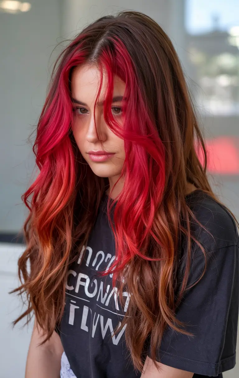 #21 Bold Flame Streaks on Long Dark Hair