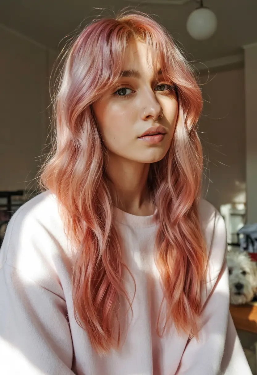 #3 Soft Rose Gold Waves with Curtain Bangs