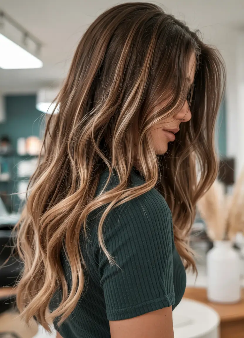 #12 Subtle Caramel Highlights on Long Layers